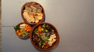 Next came "Nice to Meet You, Today It's Me," a shared tapas experience designed to spark conversations and creativity. Guests were presented with an assortment of bases—crackers, bread, rice crackers, and tortillas—accompanied by colorful vegetable creams. The activity invited participants to craft tapas that symbolized their identities or shared stories, memories, and playful prompts like "What name would also suit you?" This course transformed the act of eating into a bridge for connection, fostering moments of laughter and mutual understanding.
