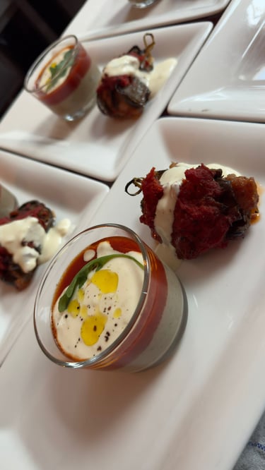 The main course, "Don't Be Afraid to Be Different," highlighted Melanzane alla Parmigiana in three unique iterations: a warming soup, delicate rolls, and the classic preparation. This trio served as a metaphor for individuality, reminding guests that there’s no single way to embrace who you are. By showcasing the same dish in multiple forms, the meal celebrated diversity, creativity, and the courage to break free from tradition.